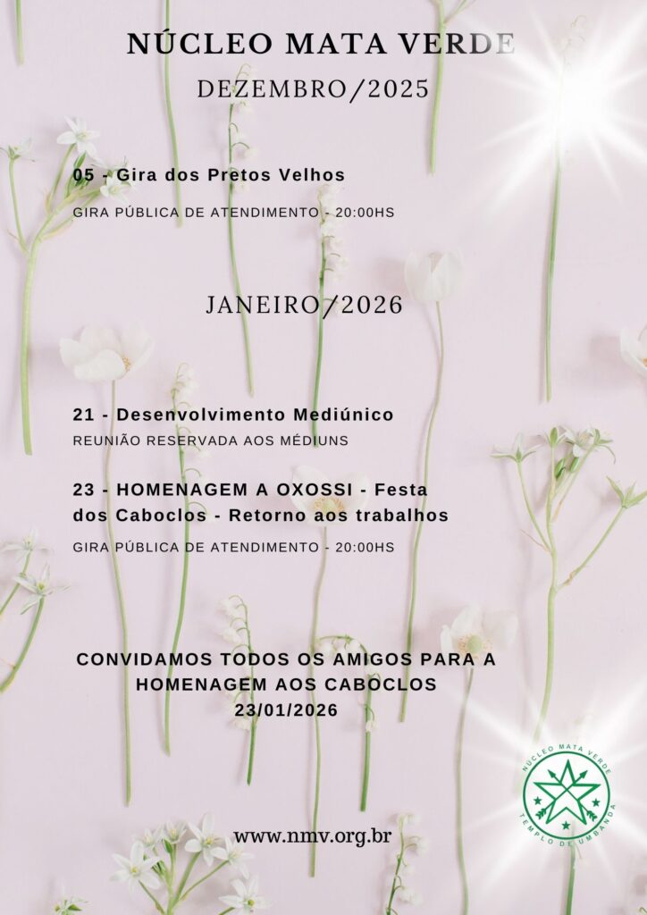 Todo o atendimento espiritual realizado no Núcleo Mata Verde é gratuito.