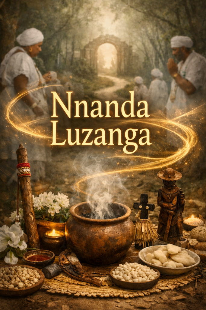 Nnanda Luzanga, ali, não parecia uma entidade a ser invocada, mas um princípio a ser compreendido. Algo ligado ao movimento que eu acabara de aprender, o caminhar em volta, o ir e vir das mãos, a circulação ao redor das sementes. Um nome que falava de deslocamento, de continuidade, de uma força que anda, não apressada, mas constante.