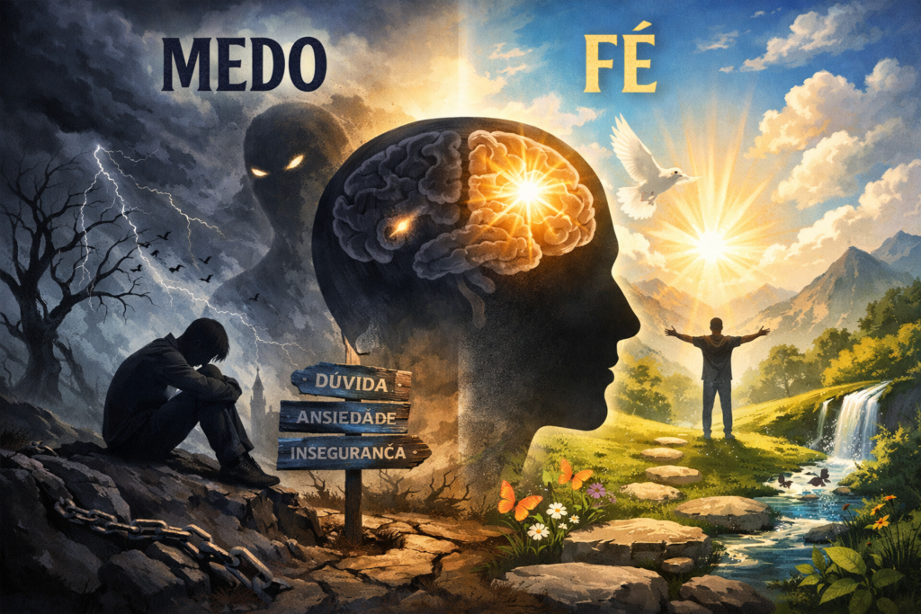O medo contrai, fecha e fragmenta. Ele nos faz enxergar apenas uma parte da realidade, geralmente a mais ameaçadora. A fé, por outro lado, expande, organiza e integra. Ela amplia o olhar, ajuda a unir razão e emoção e permite compreender que a vida é maior do que um único problema ou dificuldade.