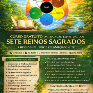 🌿 Núcleo Mata Verde Tradição Espiritual dos Sete Reinos Sagrados Curso Anual – Início em Março de 2026 Gratuito | 18 aulas | 2 encontros mensais (2 horas) | Quarta-feira A Tradição Espiritual dos...